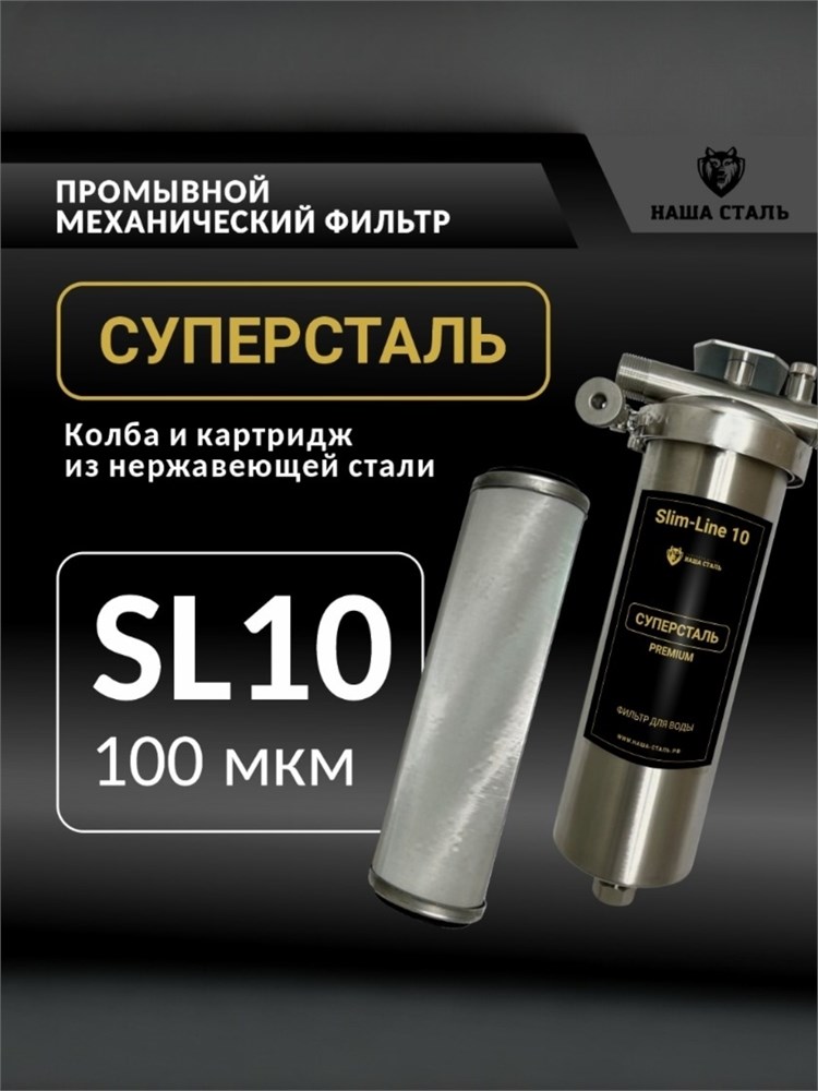 Фильтр сетчатый промывной для очистки воды слим-лайн 10 (10SL) 100 микрон СУПЕРСТАЛЬ
