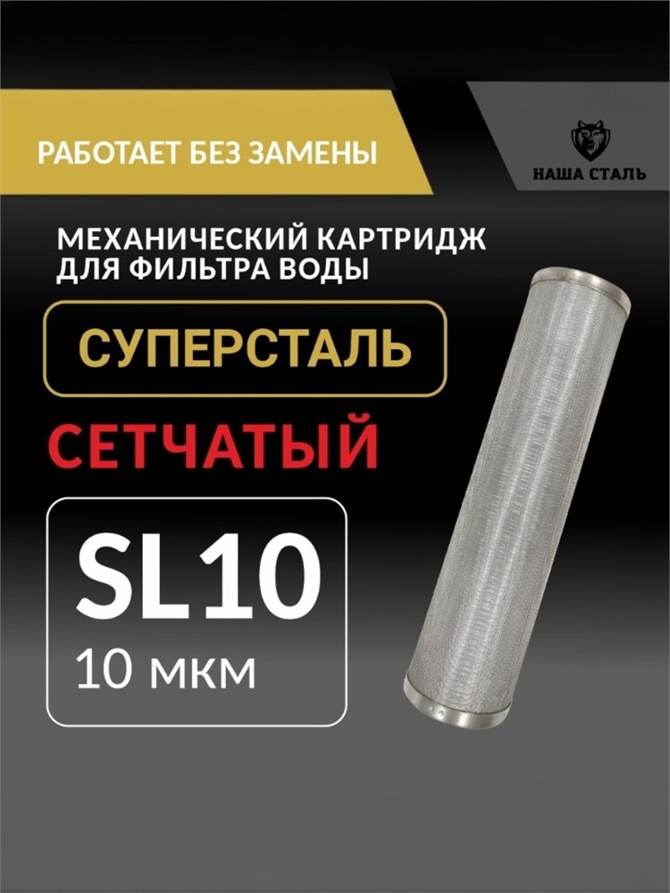 Картридж грубой механической очистки водопроводной воды , нержавеющая сталь, сетчатый СУПЕРСТАЛЬ SL 10-10 микрон