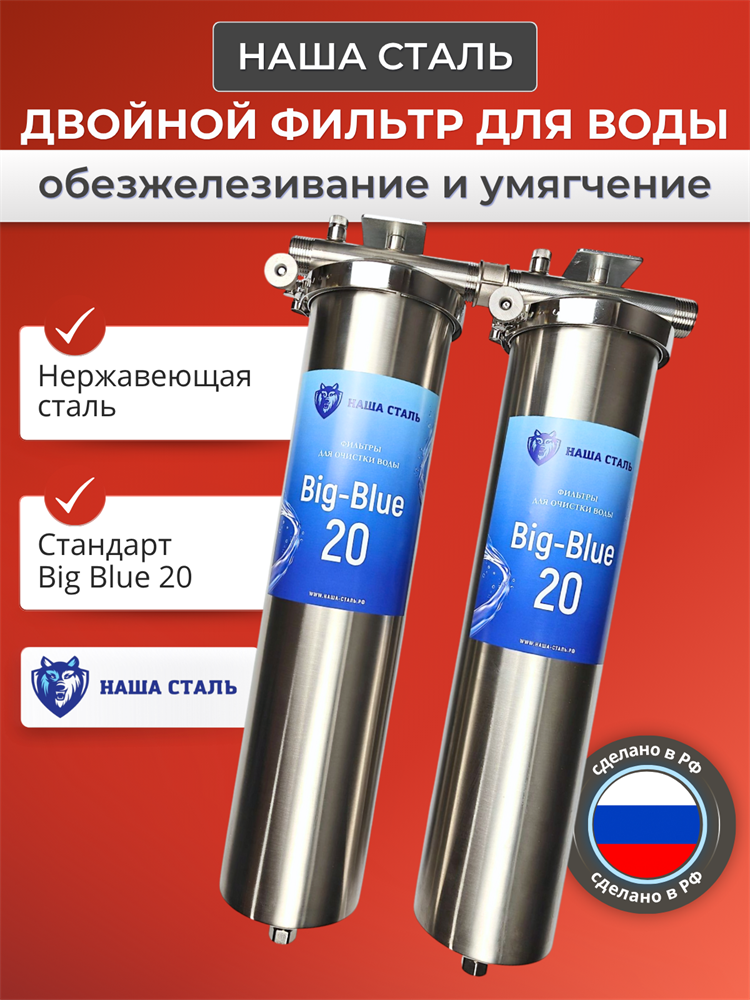 Двухступенчатая система очистки воды для скважины Наша Сталь обезжелезивание и умягчение воды BIG BLUE 20