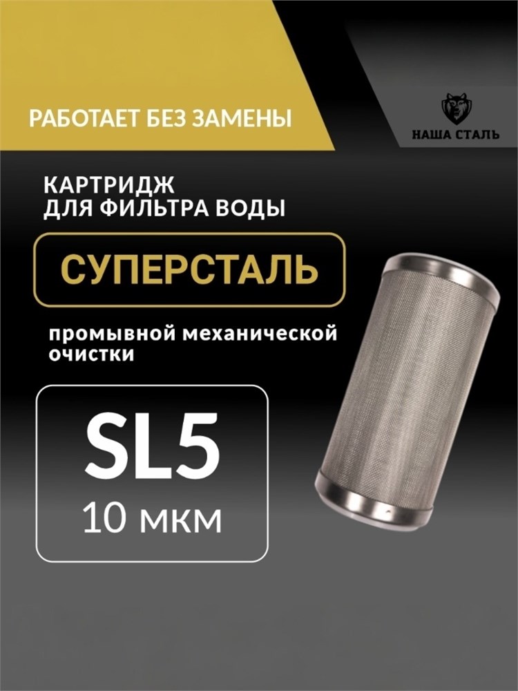 Картридж для фильтра промывной сетчатый 5SL - 10 микрон грубой механической очистки воды СУПЕРСТАЛЬ
