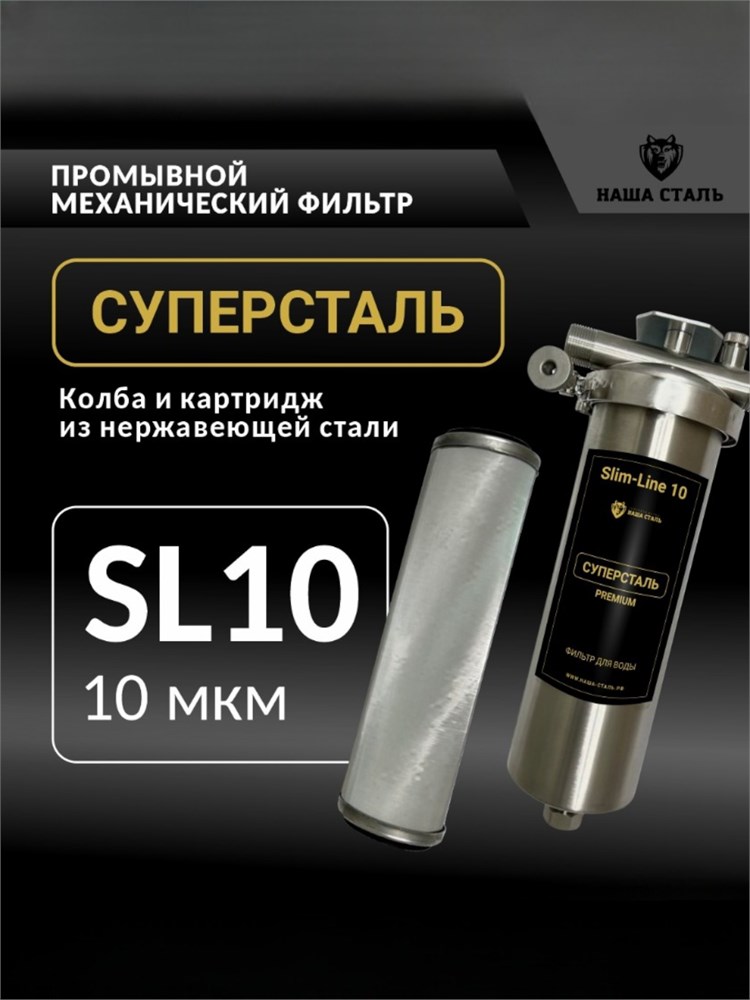 Промывной сетчатый магистральный фильтр грубой механической очистки воды "СУПЕРСТАЛЬ" SL10, 10 микрон из нержавеющей стали, используется как первая или предварительная ступень очистки воды от механических примесей